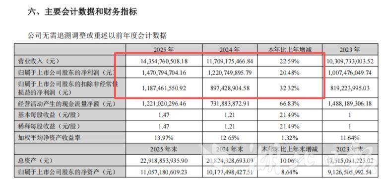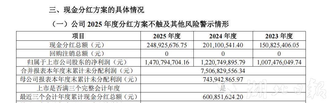 湖北日报讯(记者王艳华)3月26日,华工科技发布2025年年报,公司全年实现营业收入约143.55亿元,归母净利润约14.71亿元,2025年度拟分配现金约2.49亿元。