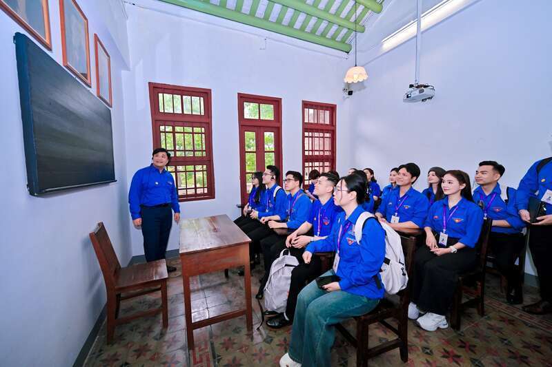 4月12日,广东广州,越南青年来华“红色研学之旅”之“不忘初心”研学营代表来到越南青年革命同志会旧址参观研学。他们走进越南青年政治训练班教室,沉浸式体验胡志明同志与越南青年革命同志会、越南青年政治训练班学员当年学习的情景。主办方供图