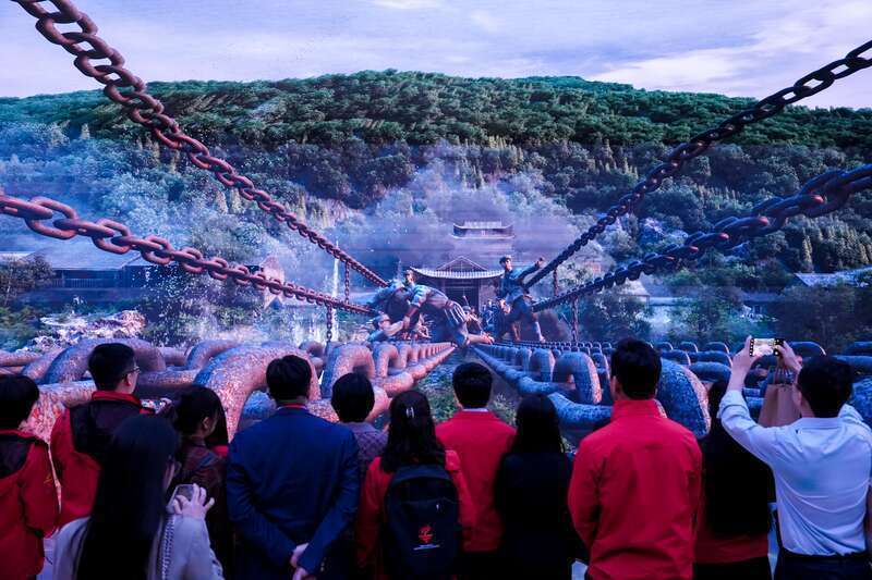 4月17日,北京,中国共产党历史展览馆,来自越南的青年代表通过场景复原了解中国共产党领导下飞夺泸定桥的革命历史,切身感受当年战斗的艰险与壮烈。主办方供图