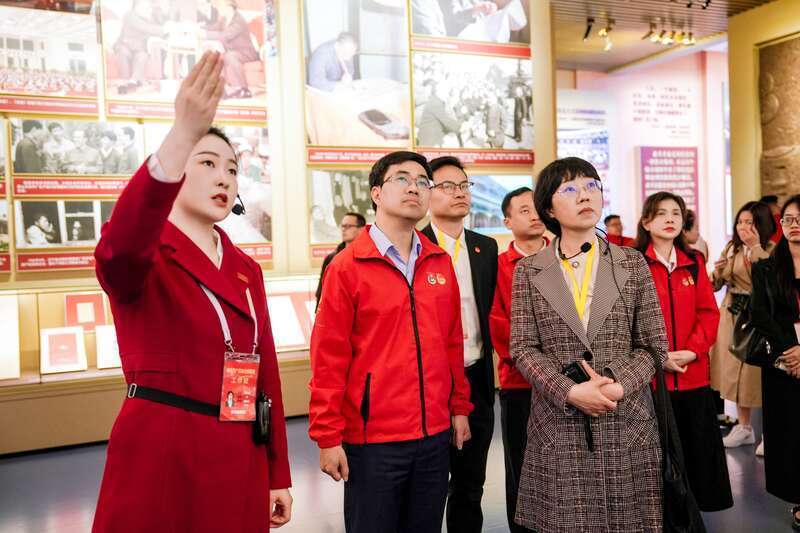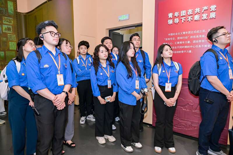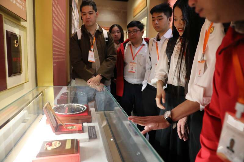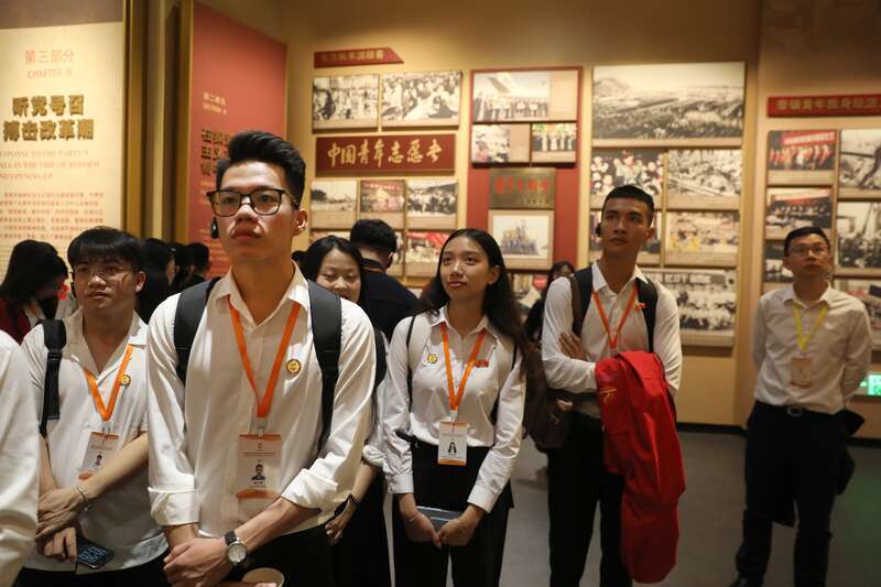 4月16日,北京,位于中央团校的中国青年运动历史展览馆,来自越南的青年代表正在观看展览。主办方供图