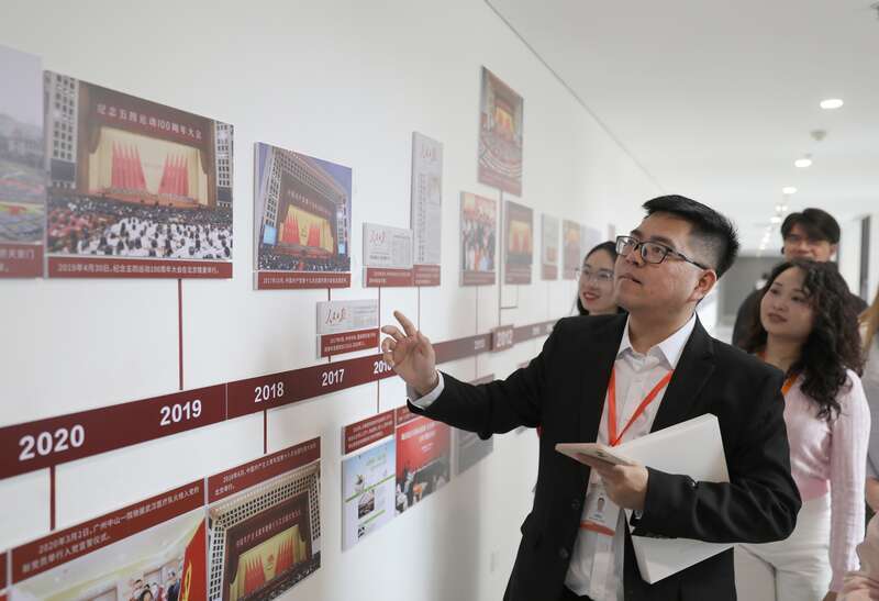 4月16日,北京,位于中央团校的中国青年运动历史展览馆,来自越南的青年代表正在团史长廊参观。中青报·中青网记者 陈剑/摄