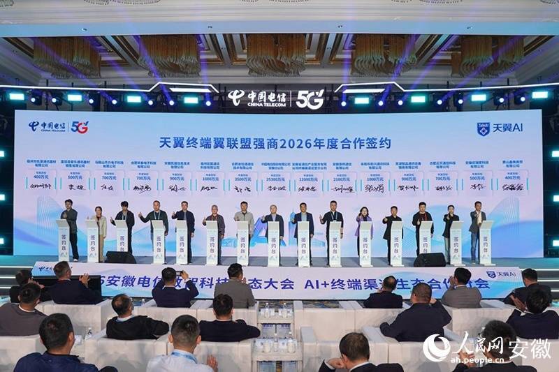 人民网芜湖4月29日电 (记者韩震震、陈若天、胡雨松、王锐、赵越)4月28日下午,中国电信安徽公司在芜湖举办“2026安徽电信数智科技生态大会—AI+终端渠道生态合作分会”。本次会议以“智能领航 智惠共生”为主题,聚焦AI浪潮下的终端变革创新与渠道迭代升级,来自终端厂商、连锁强商、地市零售商的行业精英共聚江城芜湖,共商生态合作发展。