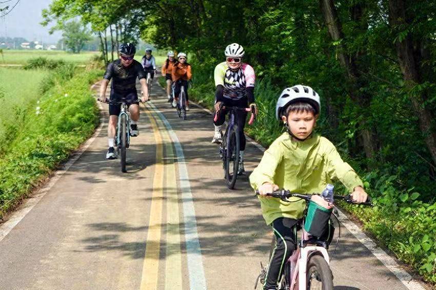 随着发令枪响,绿道骑行挑战赛率先开赛,众多亲子家庭热情高涨、活力出发。骑行路线由羊楼洞马鞍街至石人泉水库生态绿道,沿途茶芽吐翠、竹林清幽、田园如画、乡韵浓郁。参赛家庭依次经过松峰生态茶园、竹庆南渠、石人泉田园、特色乡居民宿、农创体验节点等景观,沉浸式感受春日茶乡魅力。